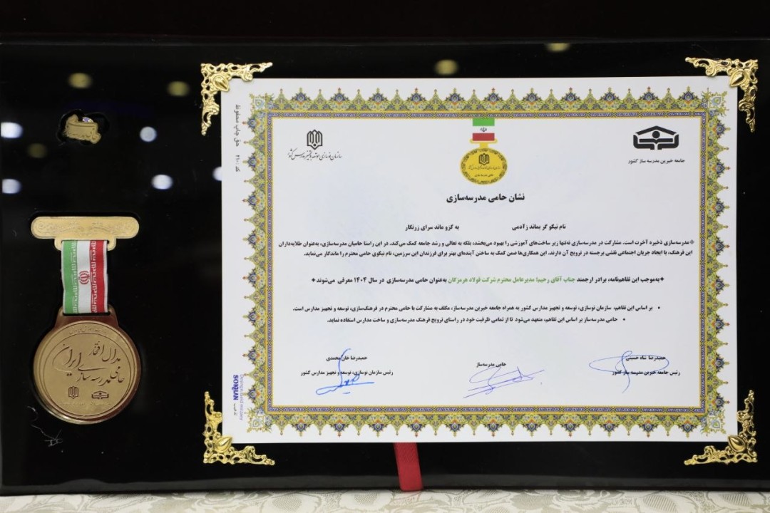 در این همایش، «نشان حامی مدرسهسازی» به علیرضا رحیم، مدیرعامل شرکت فولاد هرمزگان به دلیل حمایت از آموزش و پرورش با ساخت مدرسه و مشارکت در برنامههای آموزشی و تهیه کتب درسی دانشآموزان اهدا شد. به موجب این نشان، فولاد هرمزگان مکلف شد از تمامی ظرفیتهای خود برای در راستای ترویج فرهنگ مدرسهسازی و ساخت مراسم استفاده کند.
