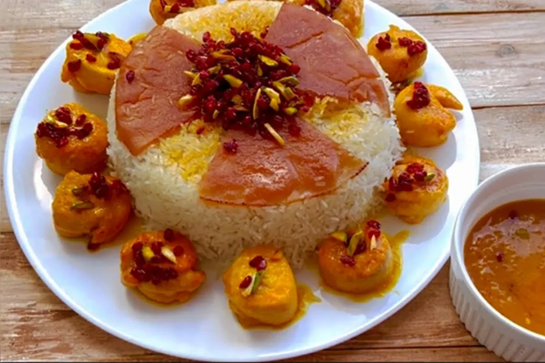 دستور پخت کامل مرغ پرتقالی مجلسی با تهچین و زرشک پلو+ فیلم